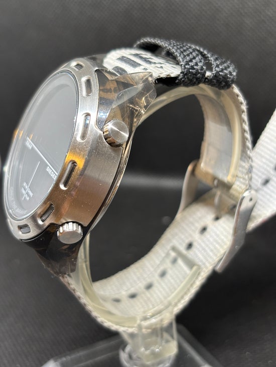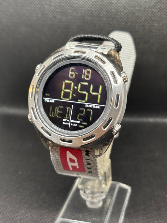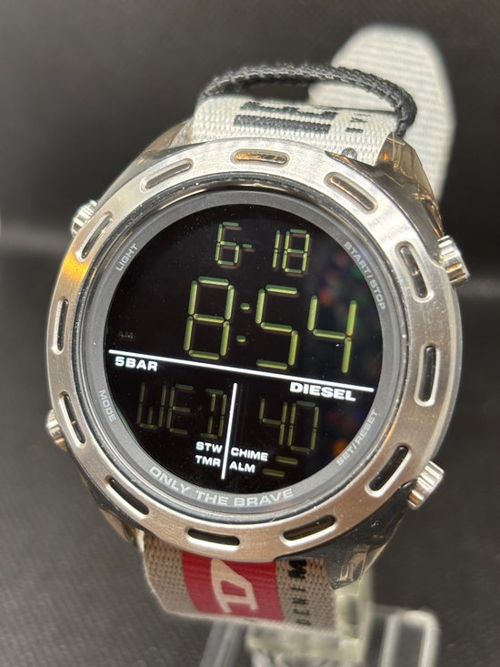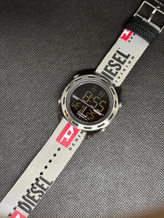 The Diesel 46mm Digital Special Edition watch combines modern design with advanced technology for a bold statement piece. Featuring a sleek digital display, it offers versatile functionality, including multiple time zones and customizable settings. Perfect for those who value both style and innovation, this watch is a standout addition to any collection. It does show some wear on the back of the strap, shown in photos.