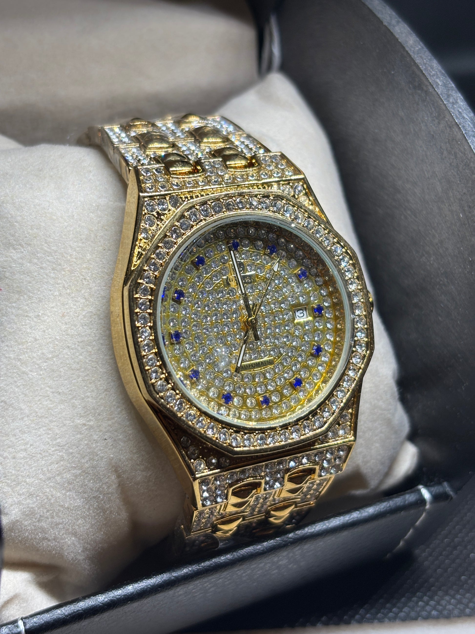 Multi-tone watch with Blue crystals on face!