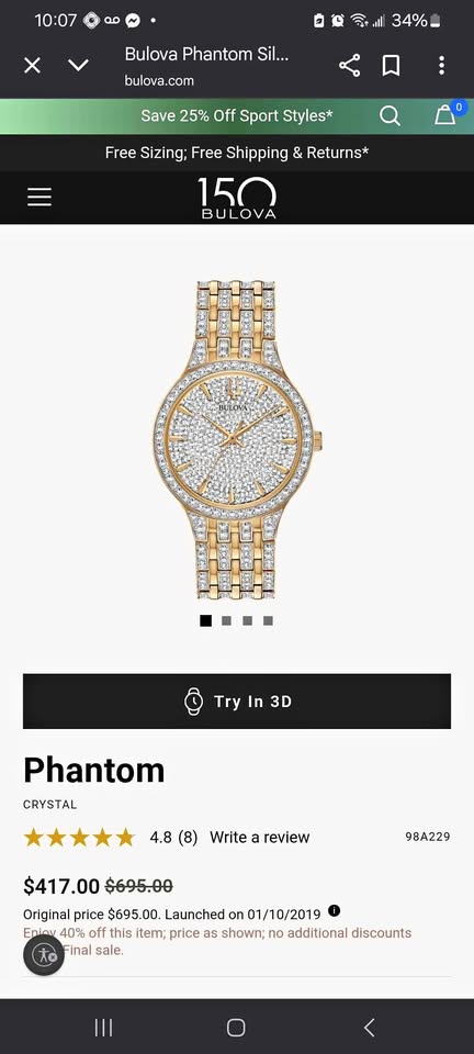 *NEW* Bulova Phantom Crystal watch w/box and papers